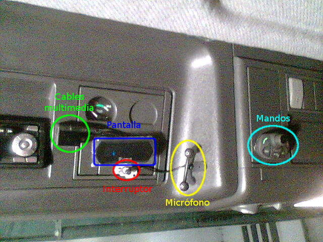 Por ahí paso los cables multimedia que se quedan en el salpicadero, y el micrófono que lo llevo al espejo interior. Es fácil meter el cable por el lateral y el techo, por el salpicadero va debajo de la tapa, y hay una zona que va a la vista, pero así lo he dejado.