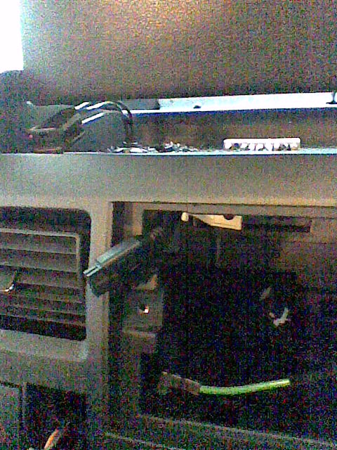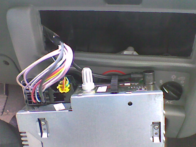 En la segunda imagen se ven las pestañas que retienen la radio, y cómo al introducir el destornillador se mueven hacia la radio, desbloqueando su salida.
